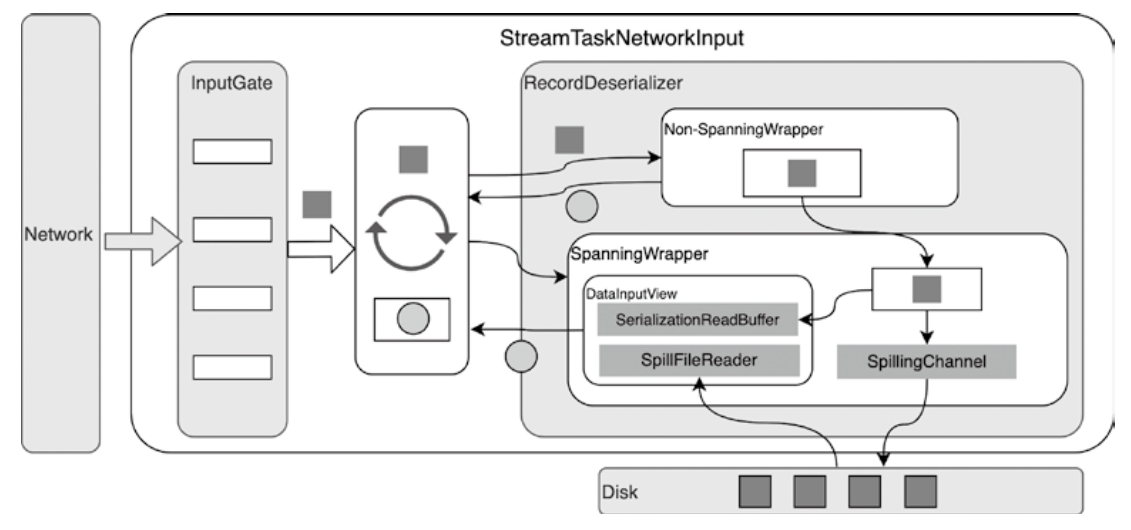 - data ingestion from the network into a Flink task (e.g., StreamTask)