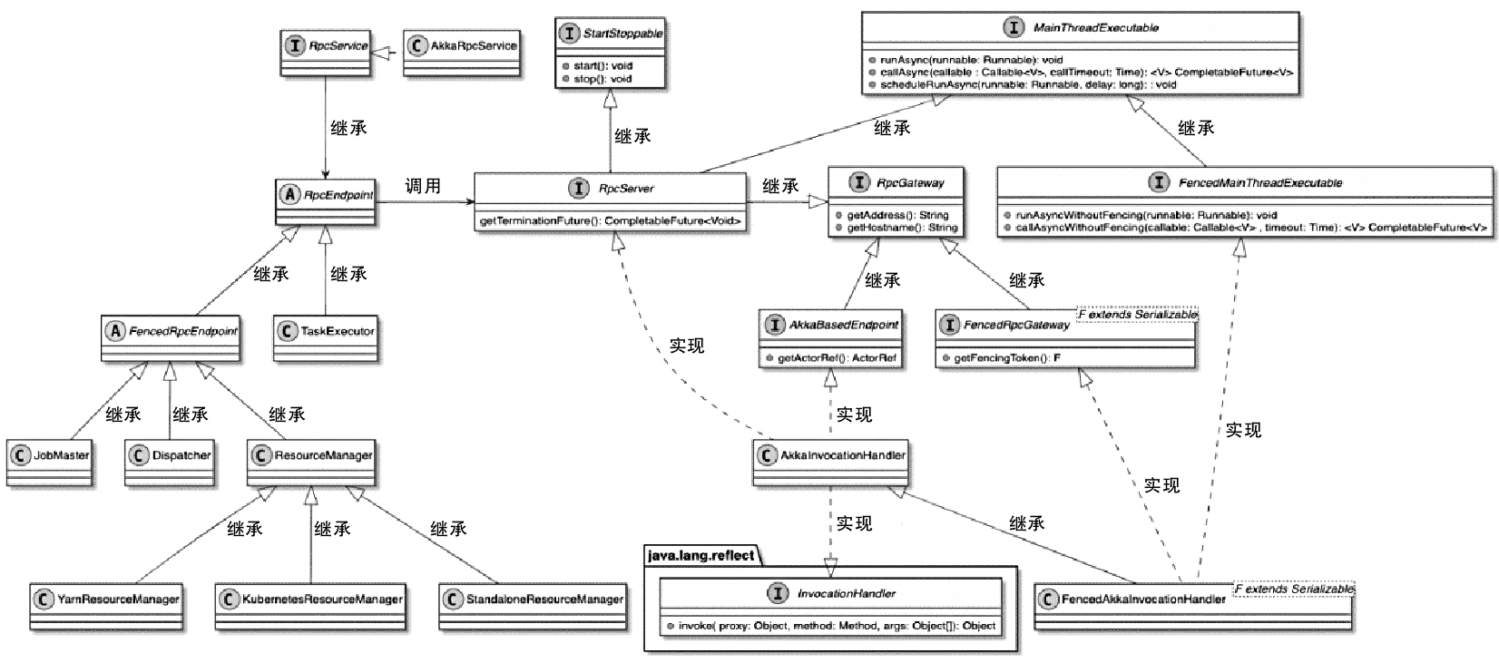 - RpcServer接口通过AkkaInvocationHandler动态代理类实现