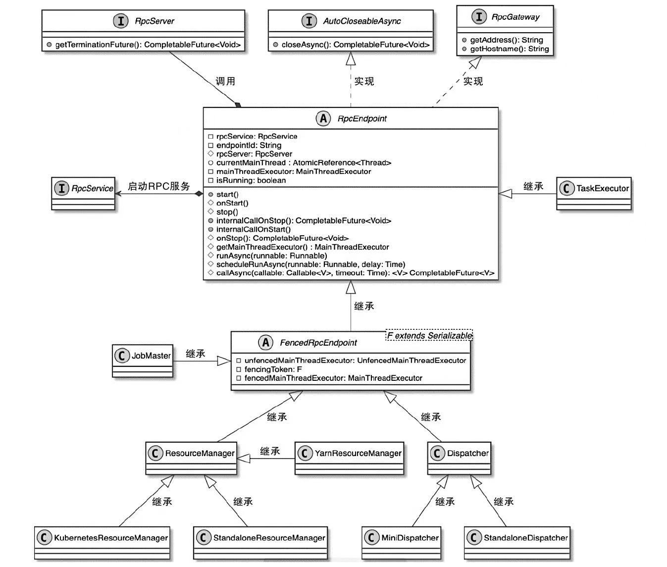 - 所有需要实现RPC服务的组件都会继承RpcEndpoint抽象类