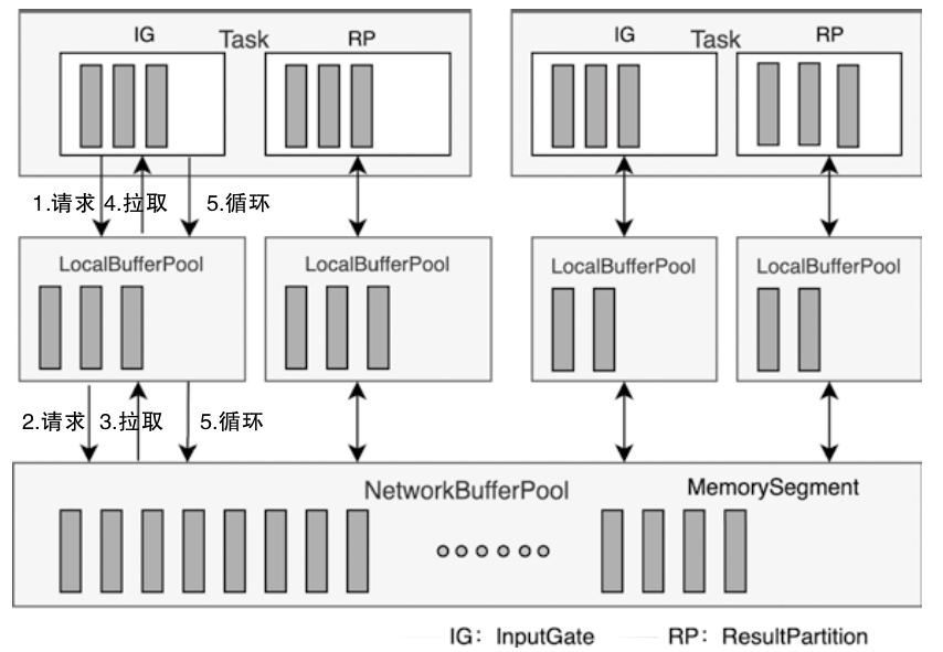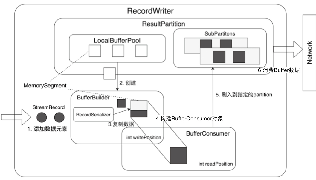 - 上游的Task中会创建LocalBufferPool为数据元素申请对应Buffer的存储空间