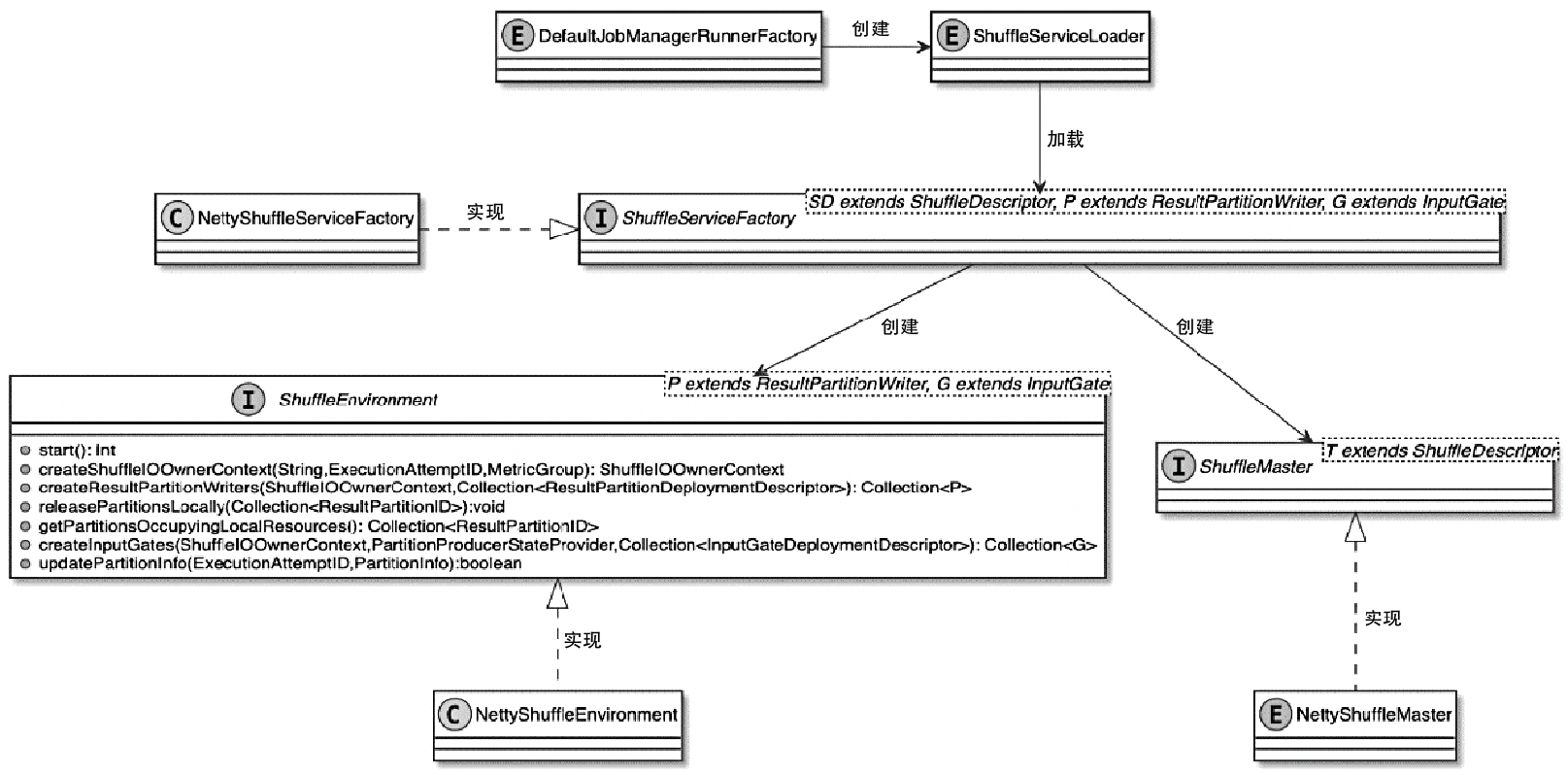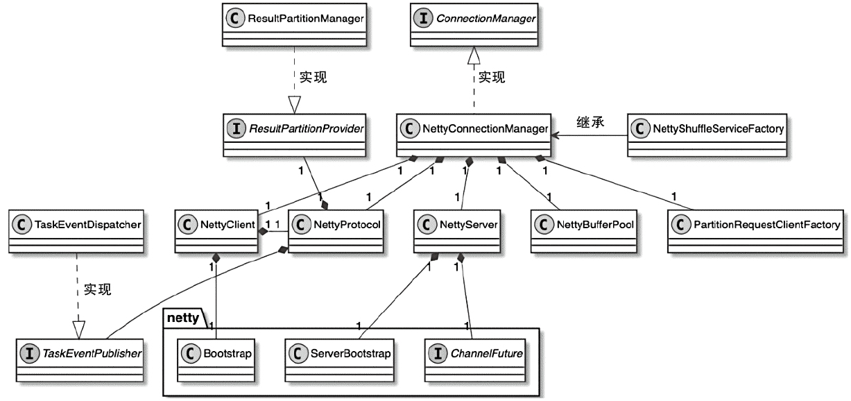 - ShuffleEnvironment组件提供了创建Task实例中ResultPartition和InputGate组件的方法