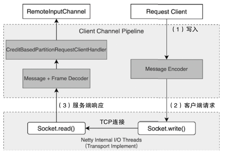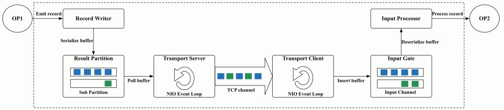 - 整个数据传输过程主要基于Flink的NetworkStack框架进行