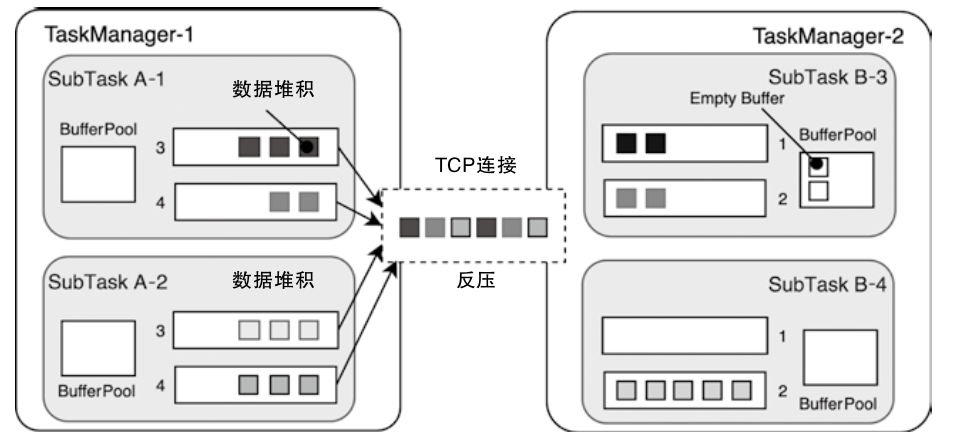 - 也不能根据 ResultPartition 当前数据挤压情况及时调整下游节点的数据处理速度
