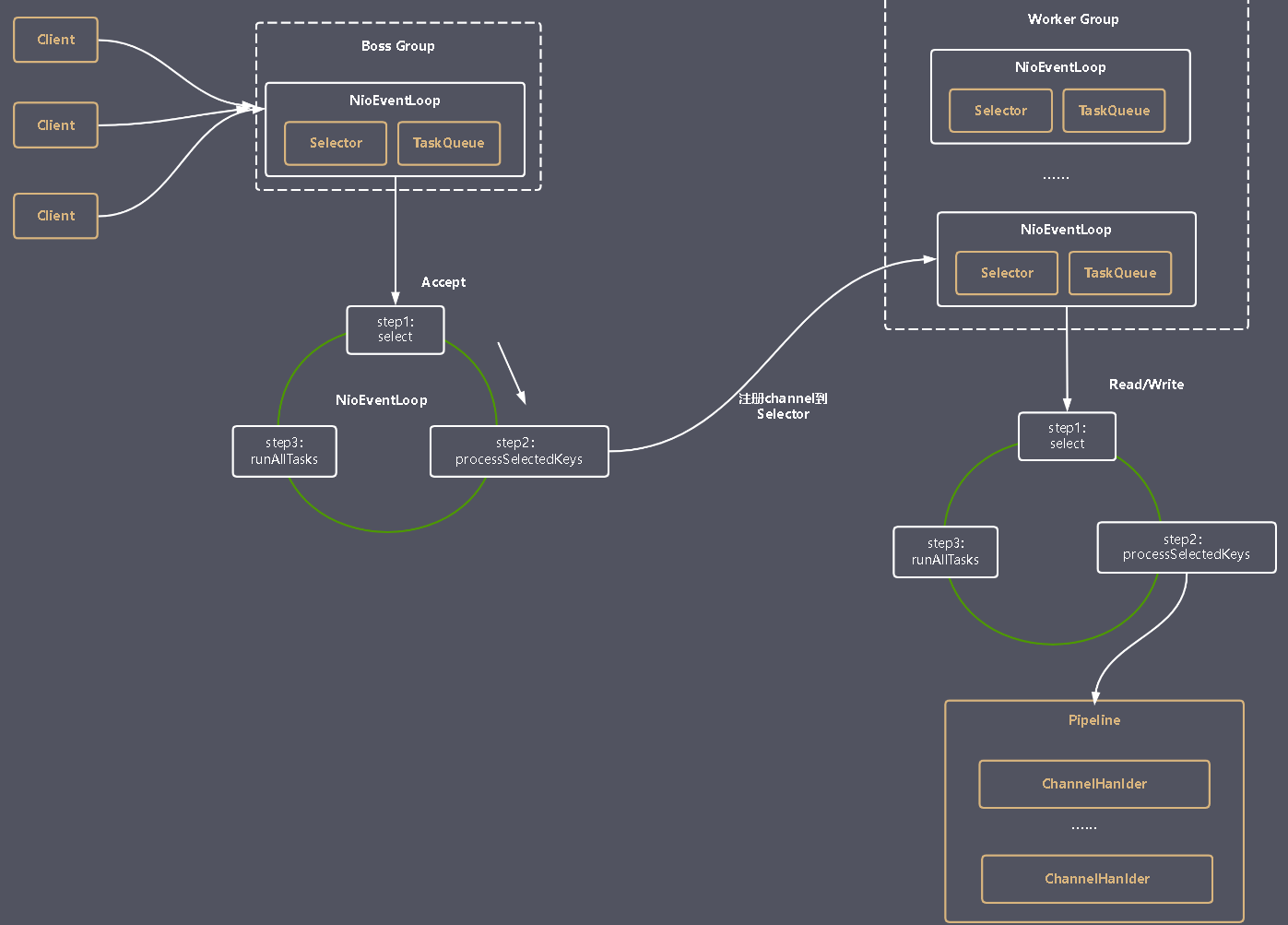 - Netty Reactor 工作架构图