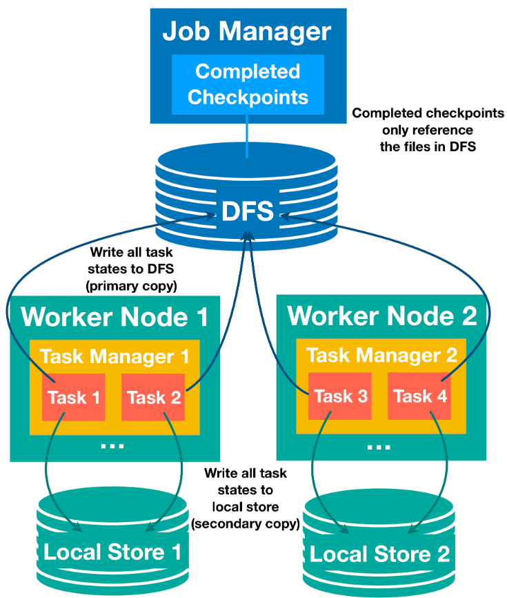 - Uploads state snapshots to durable storage (e.g., HDFS) using CheckpointStorageWorkers.