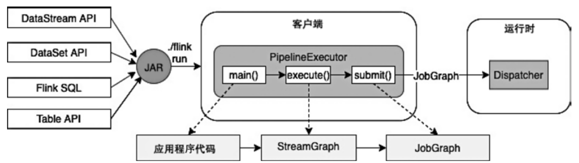 - 构建JobGraph数据结构,通过ClusterClient将JobGraph提交到集群运行时
