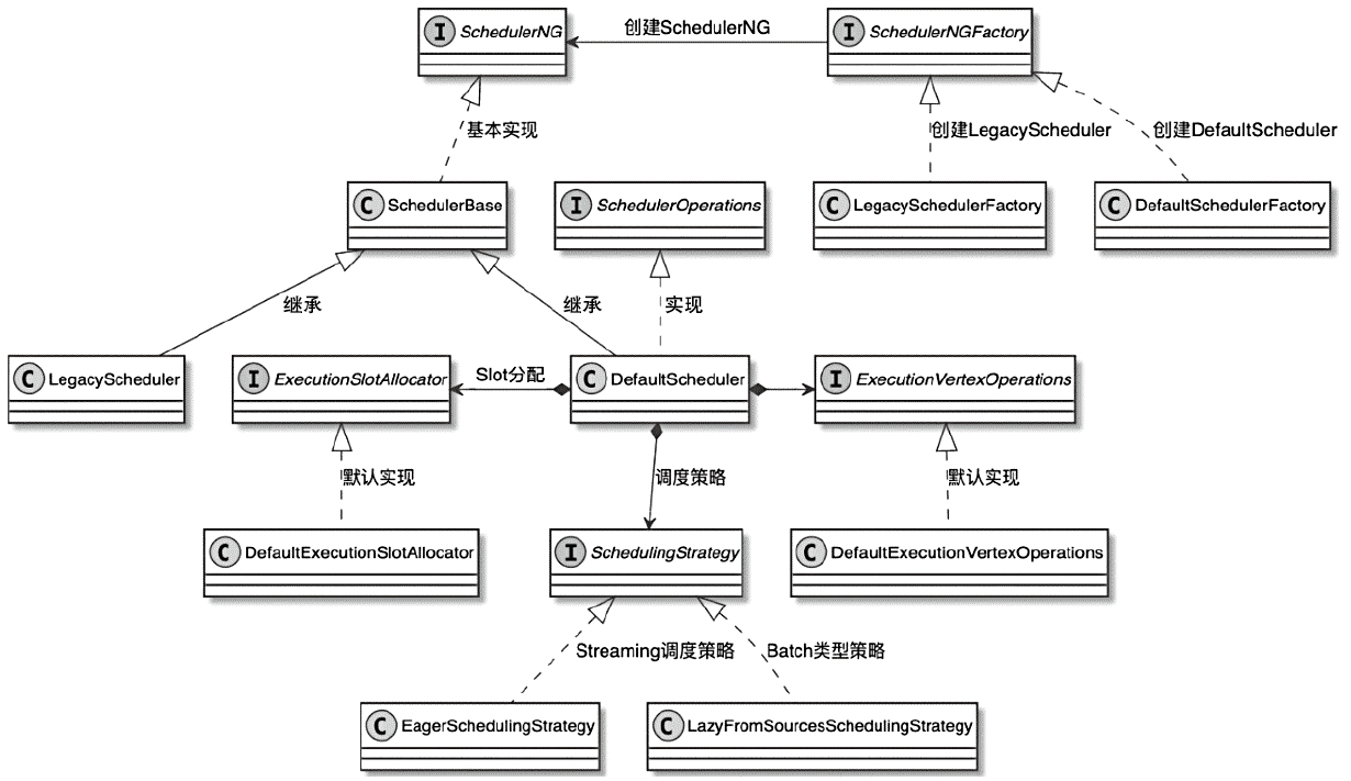 SchedulerNG作为ExecutionGraph任务调度器接口,调度策略