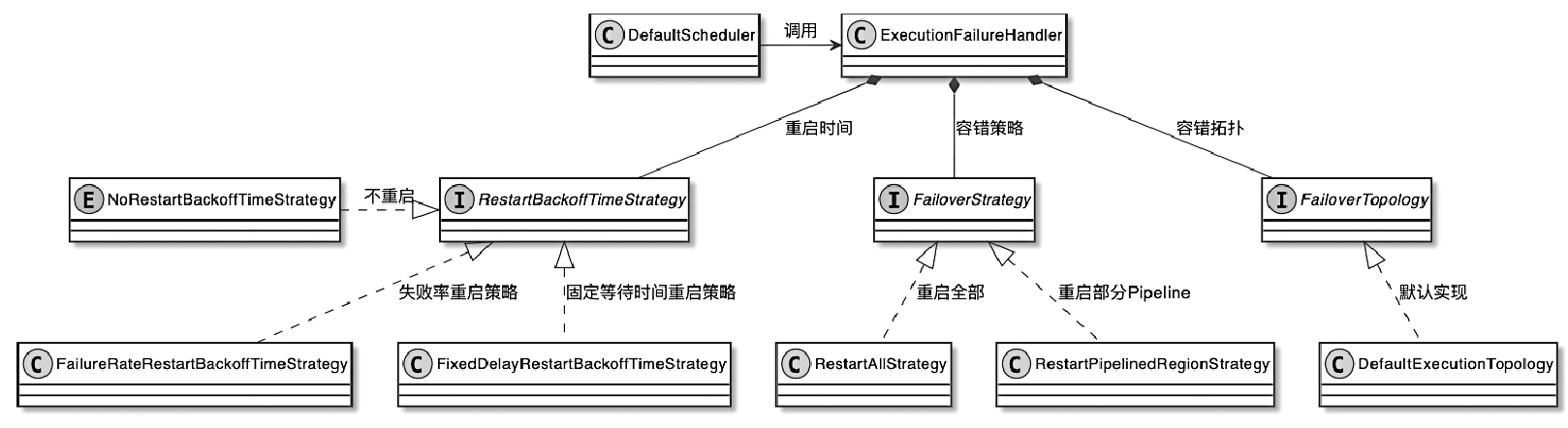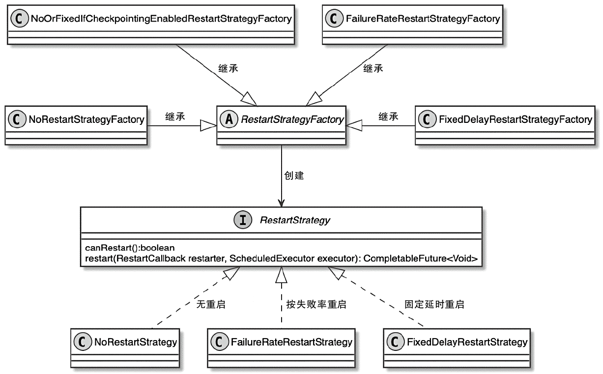 - FailoverStrategy:用于控制Task的重启范围,包括重启全部Task还是重启PipelinedRegion内的相关Task