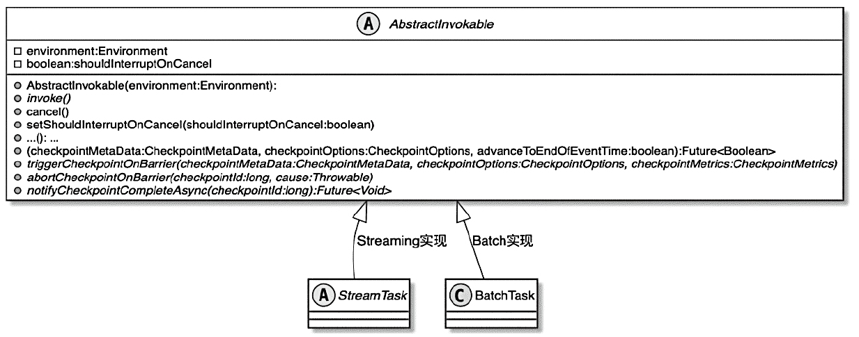 - AbstractInvokable根据计算类型不同分StreamTask、BatchTask