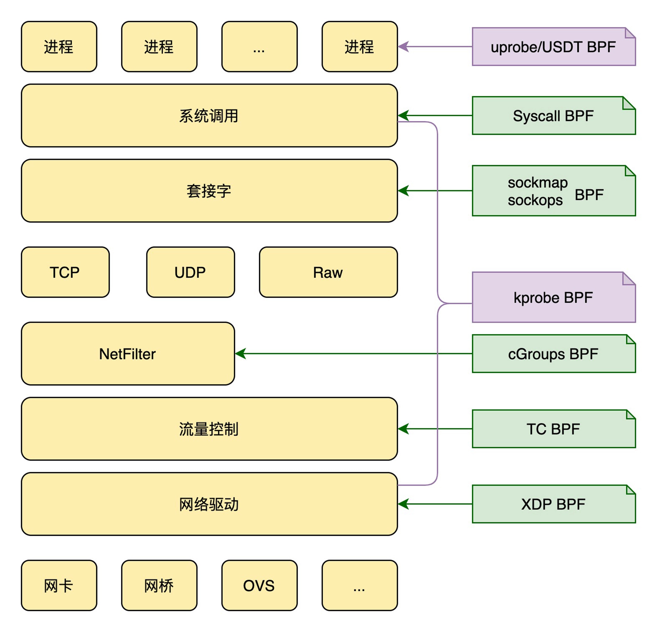 eBPF 提供了贯穿整个网络协议栈的过滤、捕获以及重定向等丰富的网络功能