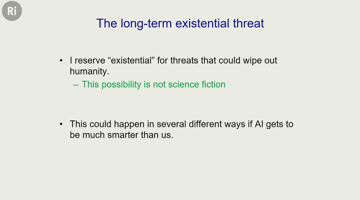 辛顿不止一次在公开场合提及他对 AI 的担忧