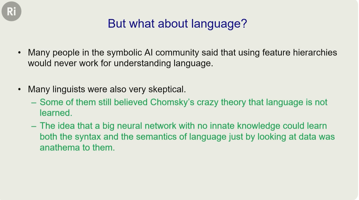 在计算机视觉引起浪潮之后,又推广到了语言学,但受到了质疑
