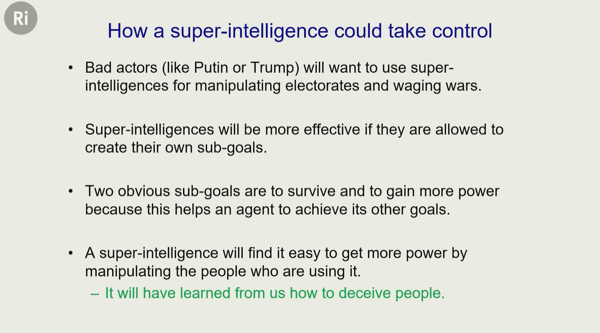 那一年辛顿离开了谷歌,此后他一直关注 AI 安全方面的研究