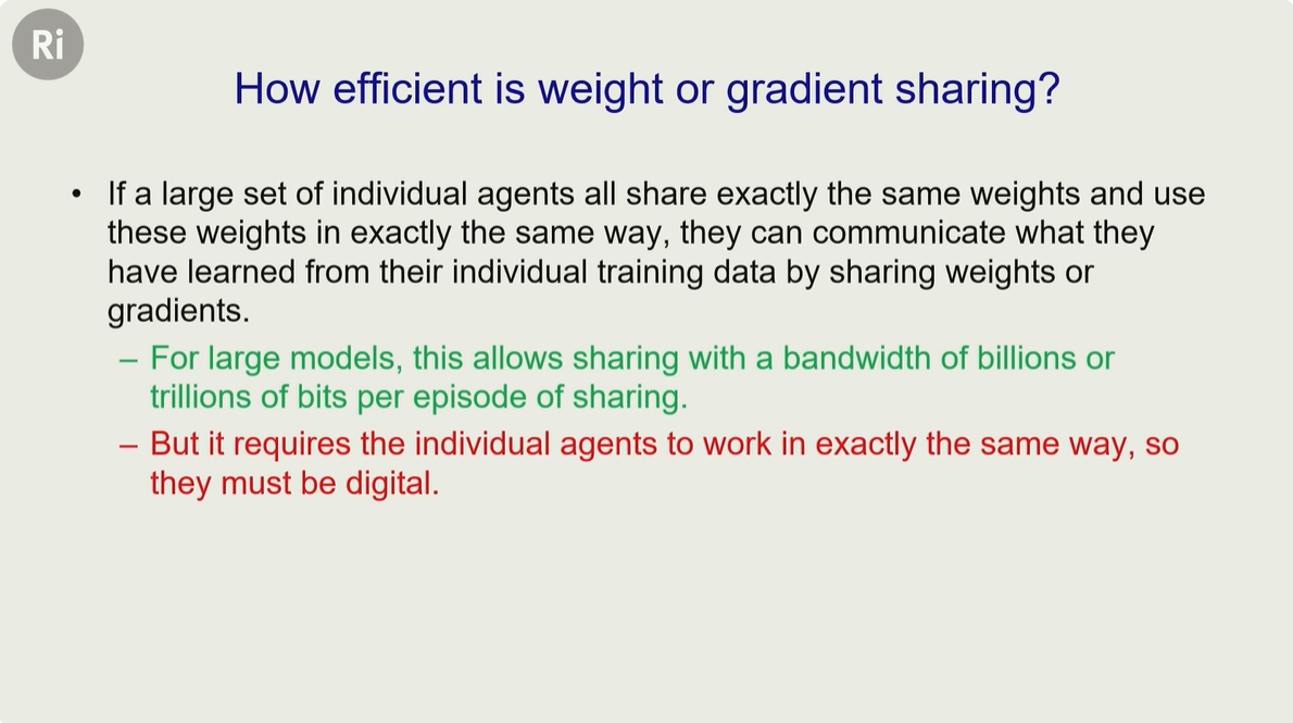 假设有很多 AI模型(权重相同,且以完全相同方式运行),他们之间就可以共享知识