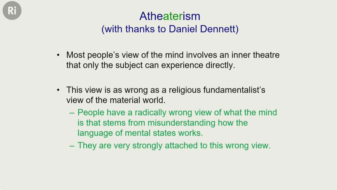 所以 “内在剧场” 观点不符合现代科学对大脑和心智的认知,是缺乏科学基础的错误认知