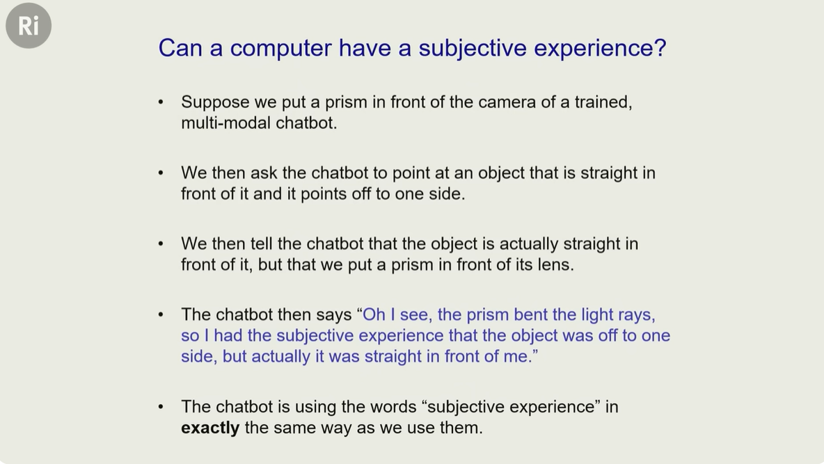 这就好像你们听完这场演讲后,听到我说【AI其实有 主观感受】一样震惊